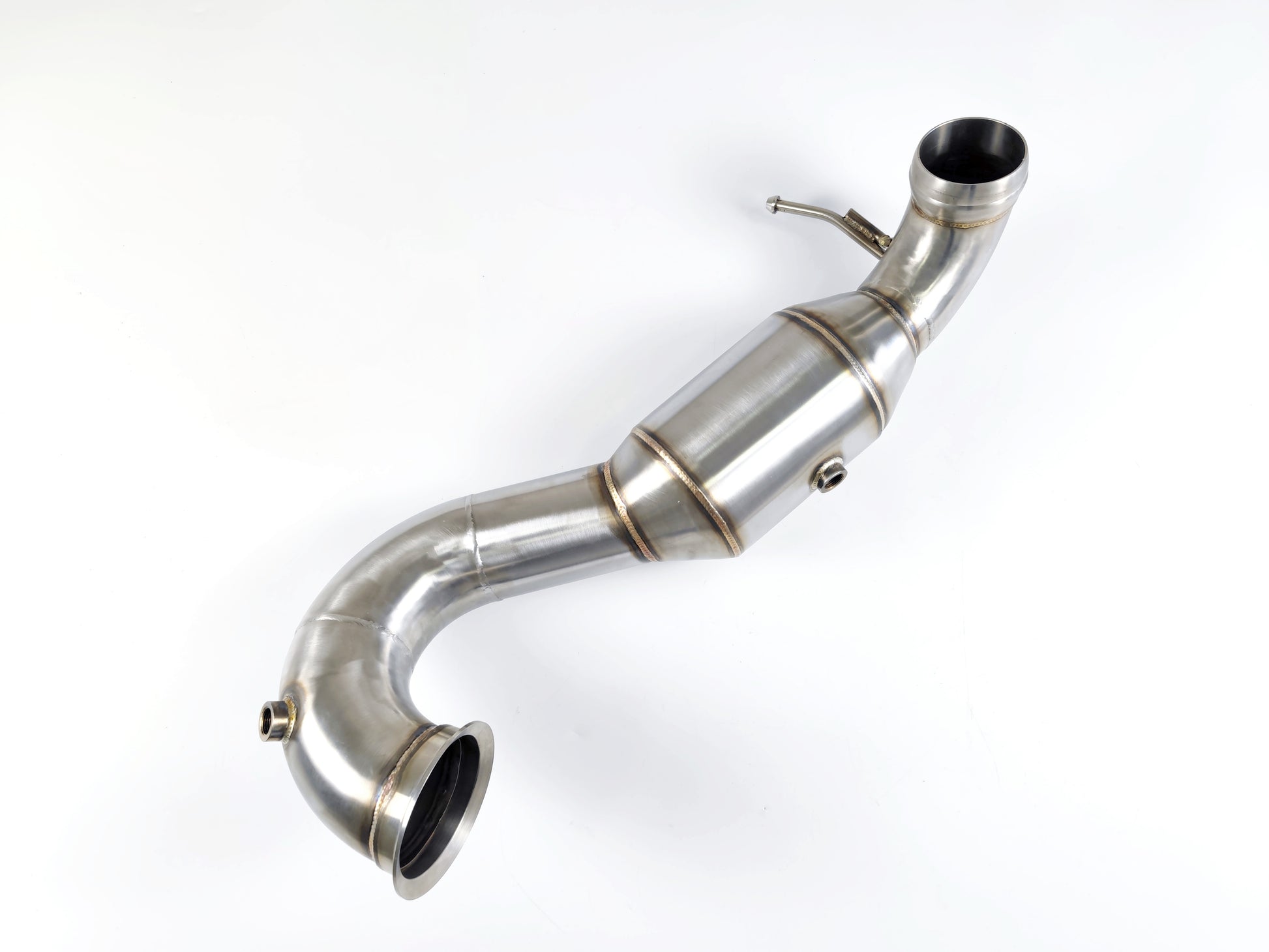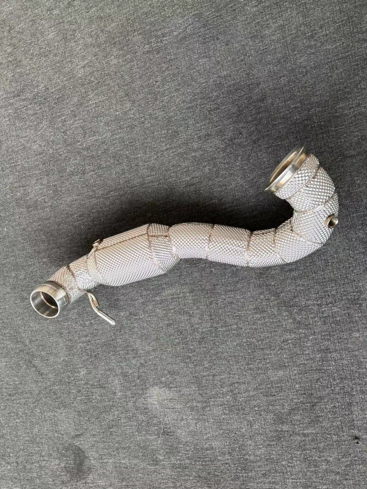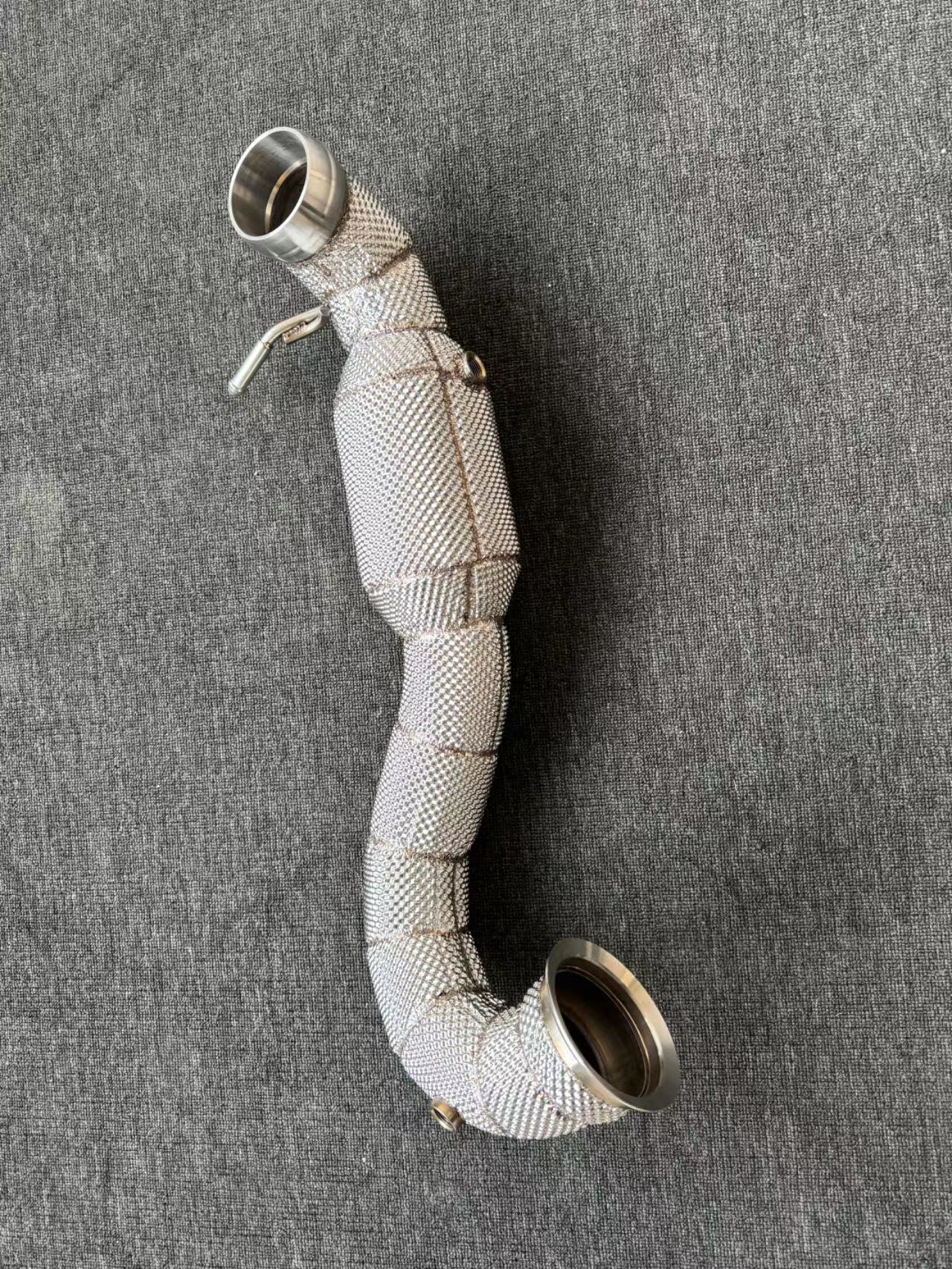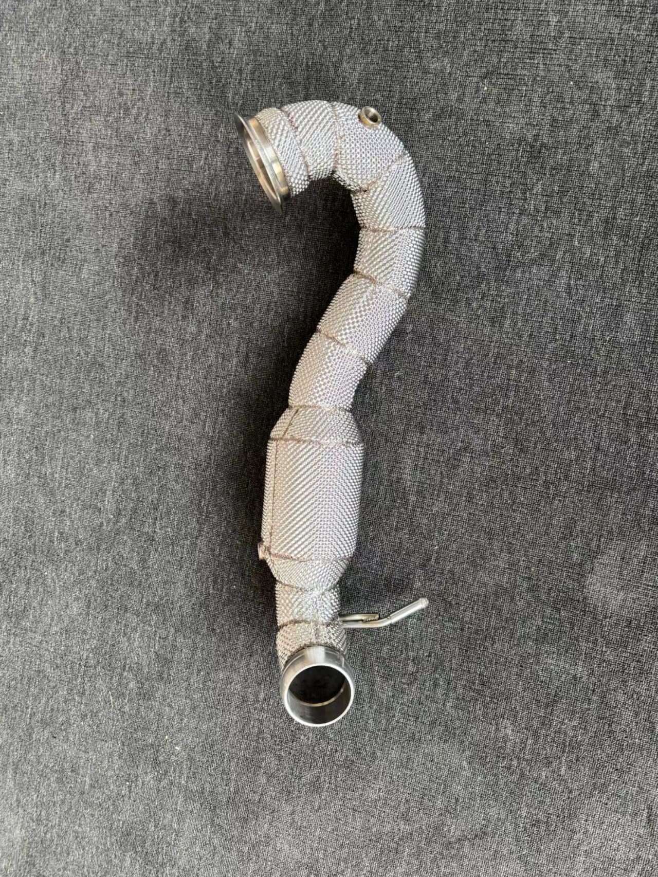High-performance stainless steel downpipes for the M133 2.0L 4-cylinder turbo engine, designed to improve flow, power, and exhaust sound.