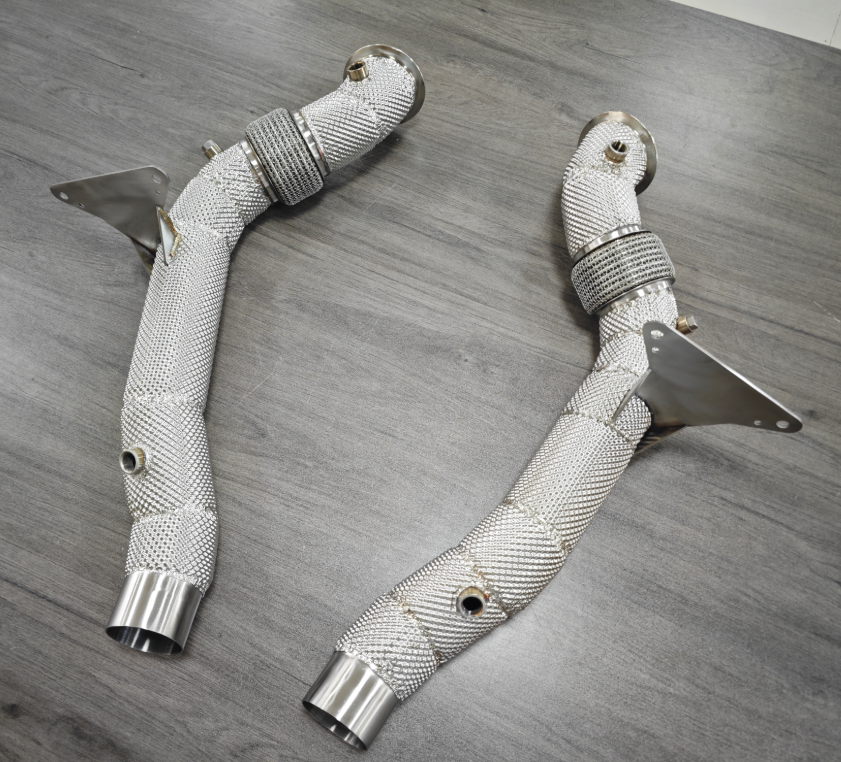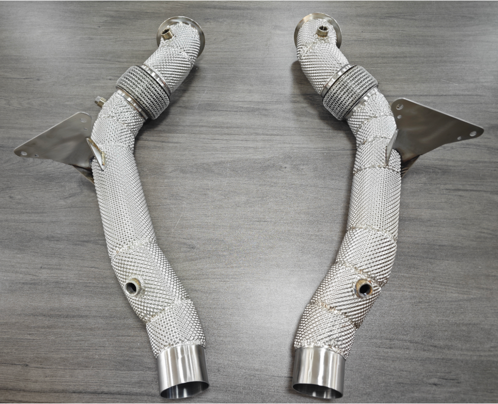 Ferrari 488 Stainless Steel Downpipes with Integrated Heat Shields | Narkos Performance